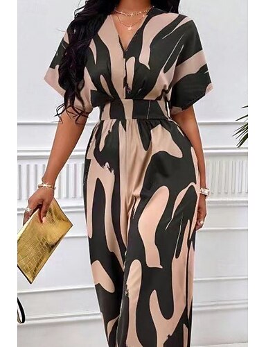 Mulheres Normal Macacão Roupa de rua Geométrica Meia Manga Manga Morcego Decote V Imprimir Rua Diário Ajuste Largo Marron Verde Damasco Verão