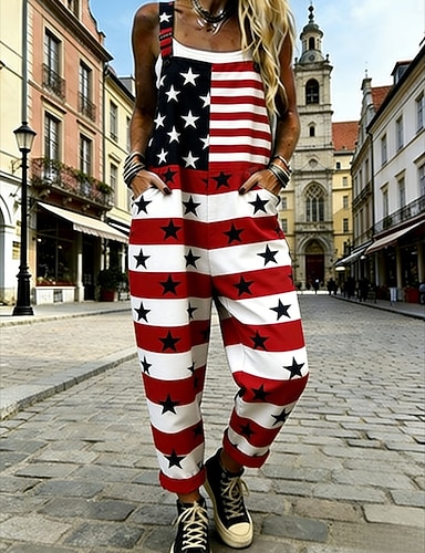 Maiô feminino estilo tankini para o Dia da Independência dos EUA, conjunto de duas peças com calcinha, costas nuas, estampa gráfica, decote em U e sem mangas.