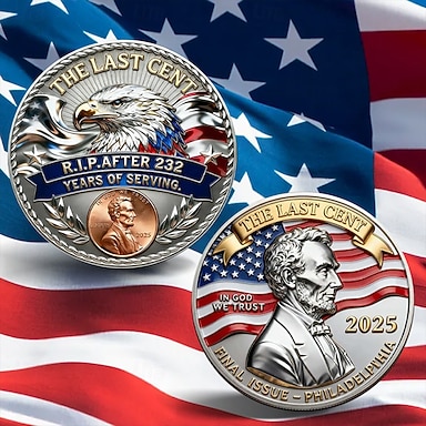 Moeda comemorativa do último centavo – homenageando 232 anos de serviço, moeda comemorativa de metal do último centavo de Lincoln, moeda colecionável em tributo à história americana, lembrança banhada a ouro.