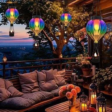 1 unidade de lanterna de balão de ar quente para exterior, à prova d'água, colorida, em vidro e metal, com luz LED simulando chama, para decoração de jardim, quintal, fazenda e árvores, iluminação