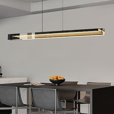 Luminária de ilha de cozinha retangular casual com cordão, ideal para tetos inclinados, sem luminária LED, para uso residencial. Inclui cúpula de acrílico fosco. 110V-240V.
