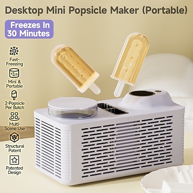 Mini máquina de picolé portátil de mesa com congelamento rápido, congela em 30 minutos, design para 2 picolés por vez para guloseimas caseiras saudáveis, compacta para casa, escritório, trailer e
