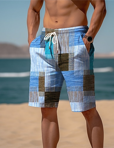 Homens Geométrica Bloco de cor Camisa Social camisa de botão Camisa de acampamento Manga Curta Moda Casual Streetwear Férias Verão Primavera colar cubano Impressão 3D Azul Verde Cáqui Cinzento