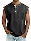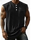 Homens Malha Íntima Top de colete Camiseta de algodão camisa sem manga Sem Manga Henley Verão Tecido Moda Designer Básico Bolsos Tingimento em peça Desaparecido Casual Férias Rua Preto Verde Claro