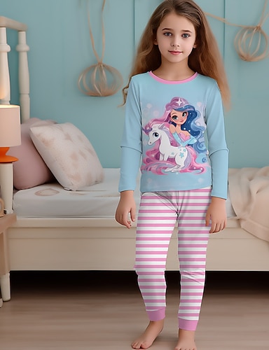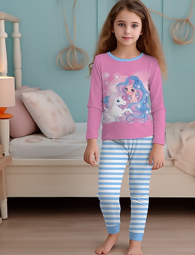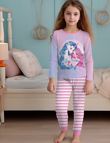 Para Meninas 3D Desenho Animado Unicórnio Conjunto Moletom e Legging Conjunto Manga Longa Impressão 3D Outono Inverno Ativo Moda Diário Infantil 3-12 anos Gola Redonda Ao ar livre Férias Encontro
