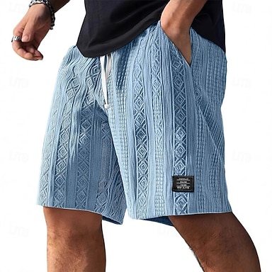 Homens Calção Shorts casuais Jacquard Bolsos Cintura elástica Tecido Textura Conforto Respirável Curto Casual Ao ar livre Praia Férias Moda Azul Preto Micro-Elástica