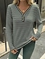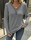 Camiseta Feminina de Manga Longa Listrada Elegante Moda Diária Manga Longa Gola em V Tops Regulares Estampa Diária Fim de Semana Preto Rosa Azul Laranja Verde Outono e Inverno Pré-outono
