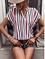 Mulheres Camiseta T-shirt Imprimir Listrado Moda à moda Clássico Manga Curta Decote V Tops longos Diário Para Noite Final de semana Vermelho Cáqui Verão Primavera