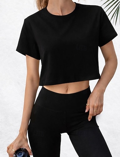 Roupas Esportivas Blusa Cor Única Mulheres Treino Espetáculo Meia Manga Capital