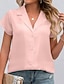 Mulheres Camisa Social Blusa de cetim Saia Côr Sólida Tecido Elegante Moda Clássico Manga Curta Aberto para a Lateral Tops regulares Diário Streetwear Trabalho Rosa Verão Primavera Outono