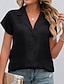 Mulheres Blusa de cetim Saia Blusa Côr Sólida Elegante Moda Casual Manga Curta Aberto para a Lateral Tops regulares Diário Escritório Trabalho Azul Preto Branco Amarelo Cinzento Verão Primavera