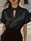 Mulheres Camisa Social Elegant Top de cetim Tops de verão Franzido Patchwork Com Pregas Côr Sólida Tecido Elegante Vintage Diário Manga Curta Assimétrico Tops regulares Diário Trabalho Feriado Preto