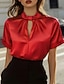 Mulheres Camisa Social Elegant Top de cetim Blusa Franzido Patchwork Com Pregas Côr Sólida Tecido Elegante Vintage Diário Manga Curta Gola Alta Tops regulares Diário Trabalho Feriado Preto Vermelho
