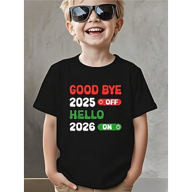 Camiseta infantil masculina de algodão, modelo número 2026, para festa de Ano Novo, gola redonda, manga curta, para uso diário, moda streetwear, estampa de designer, ideal para o verão.