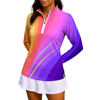 Mulheres Gradiente Riscas Camisa Camisa Esportiva Camisa polo de caminhada Camisa de tênis Manga Longa Zíper Floral UPF50+ Resistente a UV Elasticidade Alta Pavio Humido Respirável Voleibal Tênis