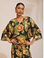 Blusa Mallorca Blossom em cetim sedoso com mangas dolmã