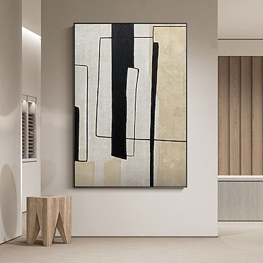 pintura a óleo artesanal pintada à mão arte na parede retângulo preto branco bege imagens abstratas decoração de casa decoração esticada moldura pronta para pendurar