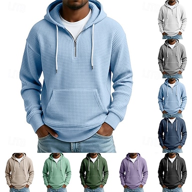 Homens Moletom Moletons Waffle Moletom com capuz Quarter Zipper Hoodie Adamascado Preto Branco Azul Marinha Roxo Com Capuz Tecido Textura Casual Diário Desportos e Ar livre Poliéster Roupa de rua