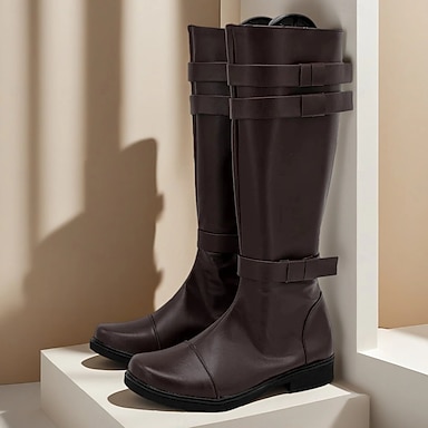 Botas altas masculinas de couro preto com fivela – calçados natalinos sofisticados para festas de fim de ano e eventos de inverno