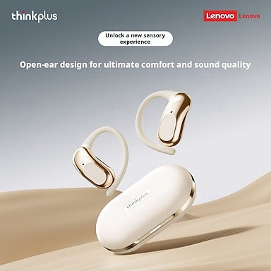 Fones de ouvido sem fio Lenovo com clipe de orelha aberto, Bluetooth 5.4, estojo de carregamento, 20 horas de reprodução, compactos. &Som potente, microfone embutido, fones de ouvido confortáveis para