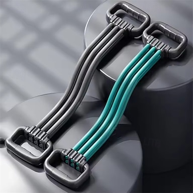 Aparelho de treinamento muscular ajustável para ombros, costas e peito, com corda elástica multifuncional de alta elasticidade para alongamento dos braços.
