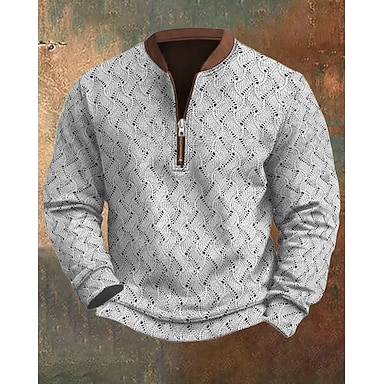 Homens Moletom Moletom com zíper Azul Preto Branco Marron Cáqui Meio Zíper Geométrica Zíper Diário Desportos e Ar livre Feriado Poliéster Roupa de rua Básico Casual Primavera Outono Roupa Moletons