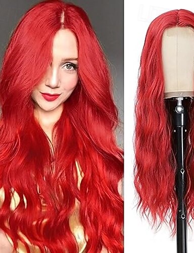 Peruca vermelha para mulheres longo ondulado encaracolado parte do meio peruca de aparência natural peruca de fibra sintética resistente ao calor para uso diário em festas perucas de festa de natal