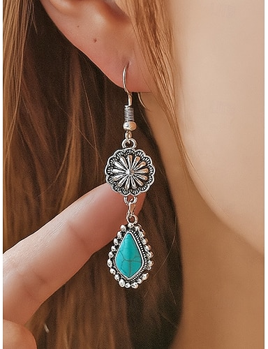 Brincos pendentes de flores boêmios femininos com pedra turquesa, brincos de liga vintage para uso casual, praia e festas