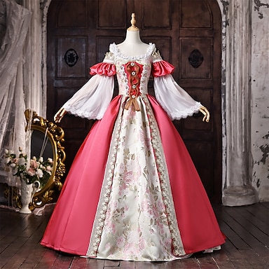 Rococó Barroco Vestido de Baile Longo Vestidos Vestido de Baile Manga Comprida Princesa Casamento Floral De Baile Decote Quadrado Fantasia Mulheres Real Dia Das Bruxas Carnaval Baile de Máscaras