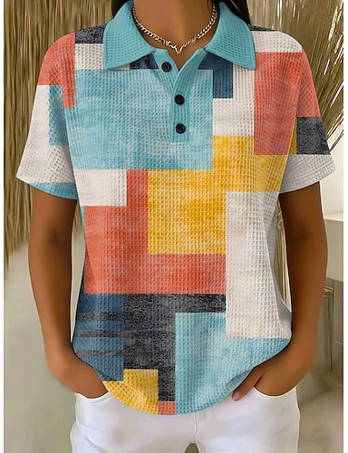 Mulheres Camisas Polo Waffle Gráfico Geométrica à moda Clássico Manga Curta Colarinho polo Tops regulares Casual Diário Azul Amarelo Rosa Verão Primavera