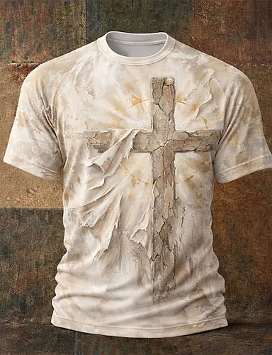 Camisa Bíblica Masculina Cristã T Shirt Há Poder No Nome De Jesus Leão E Cordeiro Estampas Gráficas Fé Religiosa Tops de Manga Curta Roupa Vestuário