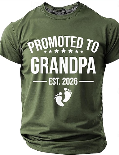 Promovido a avô em 2026 - Dia dos Pais - Camiseta masculina com estampa de pegadas de bebê para anúncio de gravidez - Presente para o novo avô - Manga curta - Gola redonda - Casual - Roupas de grife -