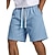 Mulheres chinês Calção Shorts de verão Férias Roupa de rua Básico Comprimento do joelho Cintura Média Tecido Com Cordão Bolsos Conforto Confortável Sem Elasticidade Diário Ao ar livre Férias Azul
