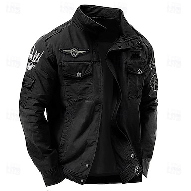 Homens Crocodilo Jaqueta Carga Jaqueta Corta-Vento Jaqueta Militar Prático Casual Ao ar livre Acampar e Caminhar Bordado Bolsos laterais Zip Frente Outono Inverno Colarinho Chinês Manga Longa Preto