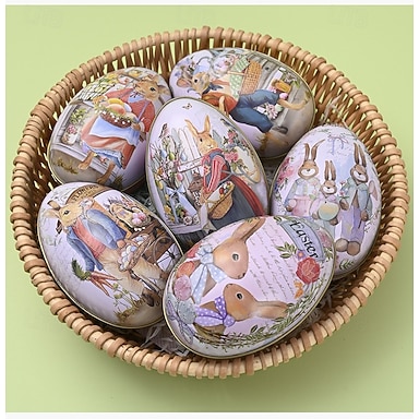 Conjunto de 6 ovos de Páscoa de lata, ovos de coelho ocos e coloridos, cascas de ovos de doce, decoração de primavera, centro de mesa, festa, cesta, presente para crianças