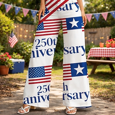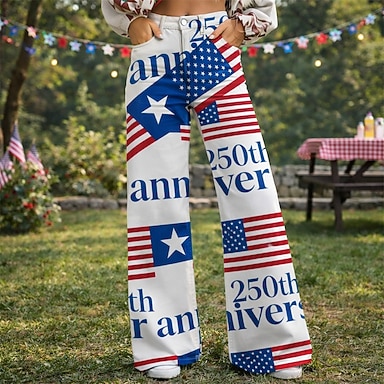 250º Aniversário EUA Retro Vintage Anos 70 Calças Calças de pernas largas Hippie Discoteca Cintura Alta Fantasia Mulheres Baile de Máscaras 4 de julho Festa Dia da Independência Adulto Calças
