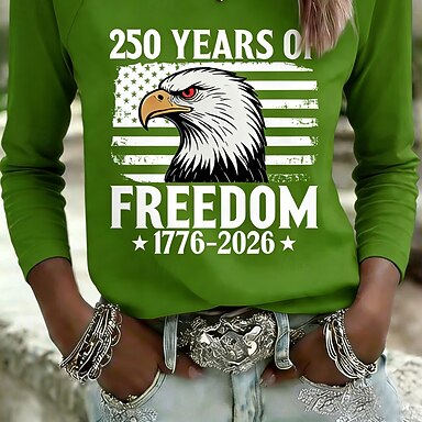 Camiseta Feminina World Soccer Match 2026 Impressão Gráfica Time de Futebol Vintage Fashion Estilosa Manga Longa Gola Redonda Tops Regulares Diários de Fim de Semana Azul Preto Vermelho Verde