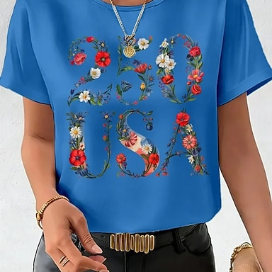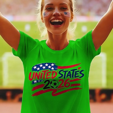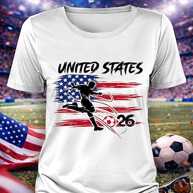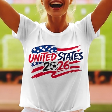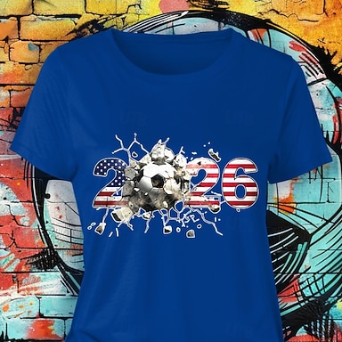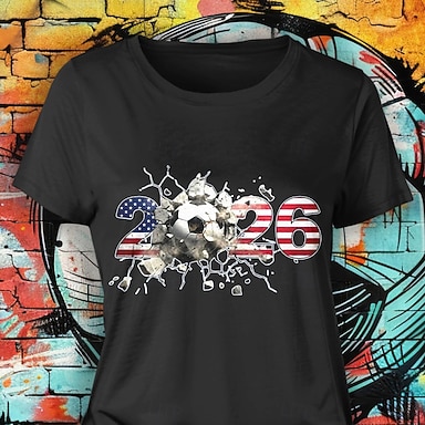 Camiseta Feminina 2026 Jogo de Futebol Mundial Impressão Gráfica Letra Estilosa Clássica Casual Manga Curta Gola Redonda Regular Tops Diário Azul Vermelho Verde Verão Primavera