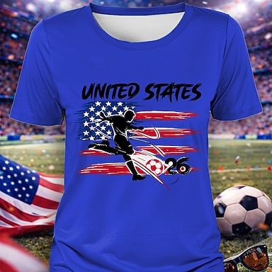 Partida Mundial de Futebol 2026 Roupa de Esporte Graphic Tee Vintage Futebol Americano Casual Camiseta Estilo de rua para Unisexo Adulto Impressão 3D para Ao ar livre