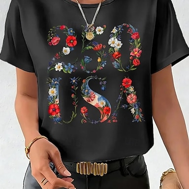 Camiseta Feminina World Soccer Match 2026 Impressão Gráfica Letra Estilosa Clássica Casual Manga Curta Gola Redonda Tops Regulares Diários Azul Preto Branco Vermelho Verão Primavera