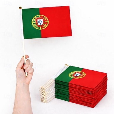 Bandeirinhas de Portugal para jogos da Copa do Mundo de Futebol, 50 bandeirinhas, 14 metros (46 pés), pequenas bandeirinhas portuguesas para decoração de festas, escolas, eventos esportivos e muito mais.