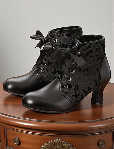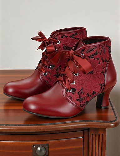 Mulheres Botas Tamanhos Grandes Botas de salto Ao ar livre Festa Dia Dos Namorados Botas Botas Tornozelo Salto Sabrina Ponta Redonda Elegante Vintage Moda Renda Camurça Com Cadarço Preto Vermelho