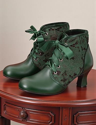 botas femininas de veludo verde vitoriano com inspiração vintage e painéis de renda | confortáveis e elegantes para cosplay e ocasiões especiais