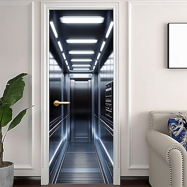 Adesivo mural 3D para porta de elevador, ilusão ótica realista para interiores de elevadores, decalque de vinil autoadesivo à prova d'água para casa e escritório modernos.