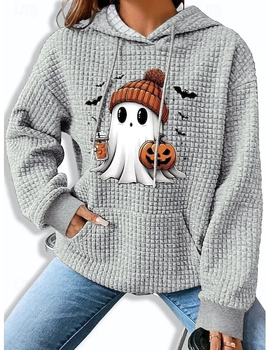 Moletom Feminino Fantasma Gráfica Abóbora Casual Longa Manga Com Capuz Tops Regulares Impressão Diária Preço Preto Rosa Azul Cinza Outono Inverno
