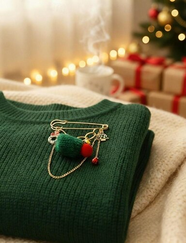 broche de pingente de Natal – chapéu de malha festivo, guirlanda, árvore e broche de sino para mulheres