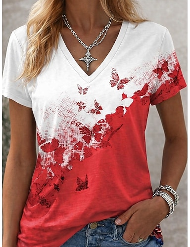 Mulheres Camiseta Bloco de cor Imprimir Gráfico Animal Abstrato Vintage à moda Clássico Manga Curta Decote V Tops regulares Diário Final de semana Azul Preto e Vermelho Branco vermelho Verão