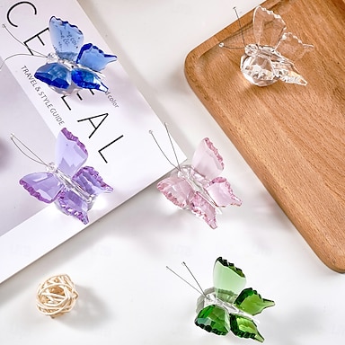 Estatueta de borboleta de cristal com base de globo transparente, elegante escultura de animal de vidro para decoração de casa, enfeite de borboleta transparente para prateleira, mesa ou exibição de