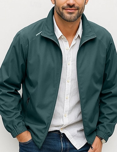 Homens Jaqueta Bomber Jaqueta de Transição Esportes A Prova de Vento Estilo Clássico Todas as Estações Côr Sólida Clássico Crewneck Padrão Preto Vermelho Verde Caqui Azul Escuro Casaco