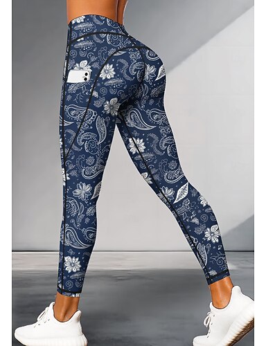 Mulheres leggings de pilates Calças de fitness Leggings casuais Bolsos Imposto de selo Patchwork Pilates Academia Treino de Ginástica Calças Meia-calça Leggings Estampado Cashemere Estampa floral